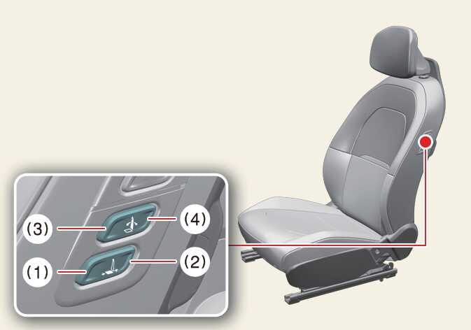 (1, 2) 동승석 전후 위치 (3, 4) 동승석 등받이 각도 조절 |