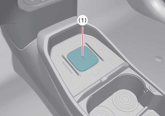 UWB 지원 스마트폰의 경우, 실내 인증 패드(무선 충전 패드)(1)에 스마트폰을 두지 않아도 차량 내에 스마트폰을 휴대하고 있으면 무선으로 디지털 키 등록이 가능합니다.
