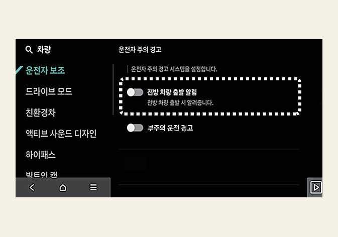 운전자 주의 경고 설정