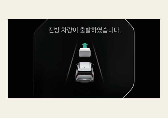 정차 중에 앞 차량이 출발하면 알림 문구가 표시되고 알림음이 울립니다. |