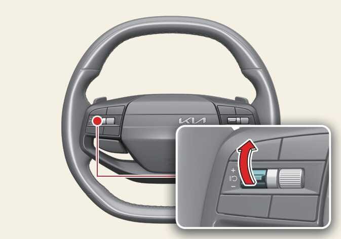 스위치를 짧게 올리십시오. 설정속도가 1 km/h 단위로 증가합니다.