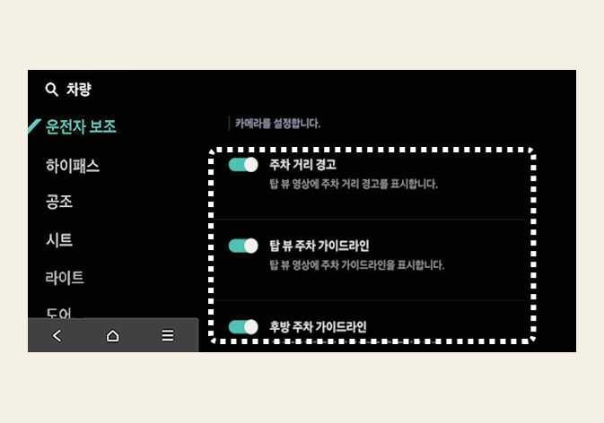 차량 사양에 따라 화면 설정 메뉴가 없을 수도 있습니다.