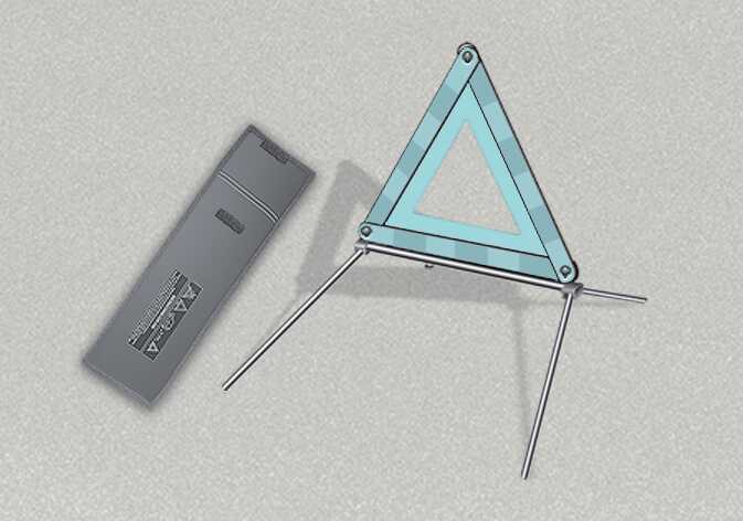 케이스에서 안전삼각대(고장 자동차 정지표지판)를 꺼내 좌·우 날개를 올려 삼각형으로 맞추어 서로 교차되게 연결홈에 고정하십시오.