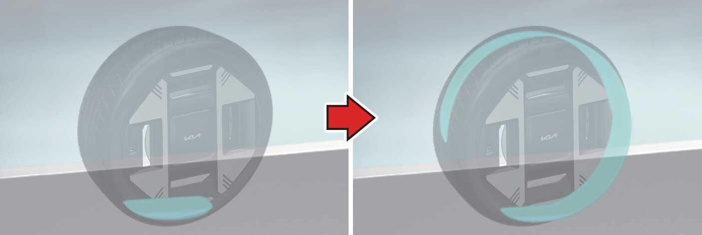 안전을 위해 운행 속도를 약 80 km/h 이상 초과하지 마십시오. 운행 중 이상 진동이나 거친 주행 혹은 소음이 발생할 경우 속도를 줄이고 주의하여 안전한 곳에 주차한 후 견인하여 자사 직영 서비스센터 또는 서비스협력사에서 점검 받으십시오.