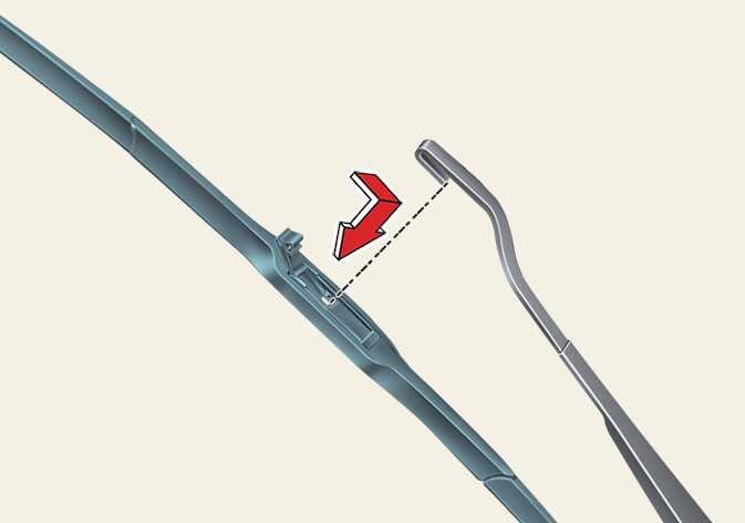 와이퍼 블레이드를 분리할 때 와이퍼 암을 뒤쪽으로 과도하게 힘을 주어 당기면 연결 부위가 파손될 우려가 있으므로 주의하십시오.