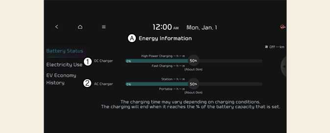 You can check the estimated range, battery power remaining, and expected charging time for each charger type.