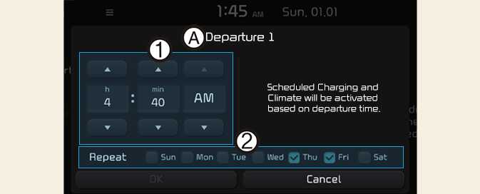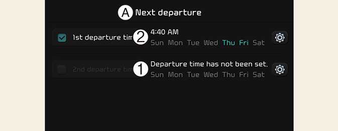 Departure Time: Set the time that you wish to start the vehicle after charging the battery.