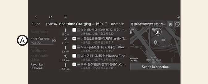Select EV → Map on the screen. Stations around the current location are searched.