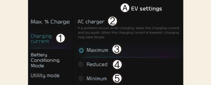 You can adjust the charging current for an AC charger. Select an appropriate charging current for the charger used.