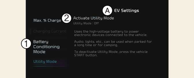 When the following conditions are satisfied, you can activate the Utility Mode function by selecting EV Settings → Utility Mode on the screen.