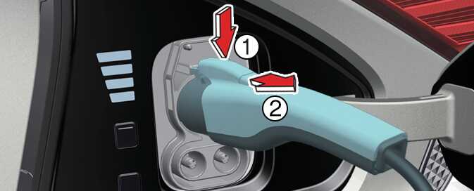 CAUTIONWhen disconnecting the charging connector, do not try to disconnect it by force while not pressing the release button. This may damage the charging connector and vehicle charging inlet.