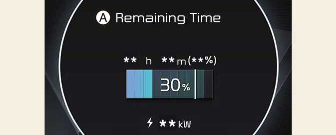 This message is displayed to notify the remaining time to charge the battery, to the selected target battery charge level, and the charge voltage level.