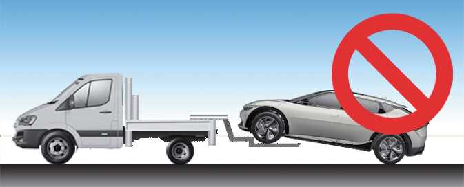 If you tow the vehicle while the rear wheels (for 2WD vehicle) or all 4 wheels (for AWD vehicle) are touching the ground, the vehicle motor may generate electricity and the motor components may be damaged or a fire may occur.