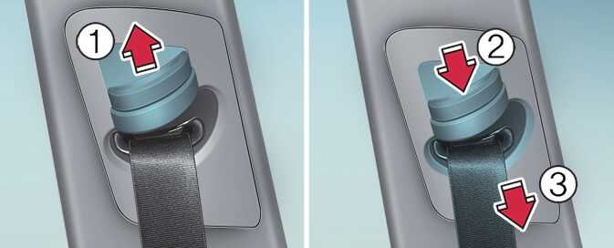 To lower it, push it down (3) while pressing the height adjuster button (2).