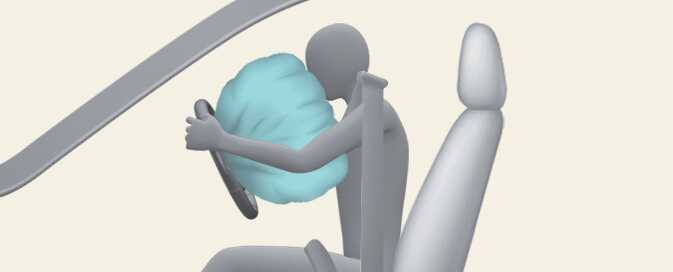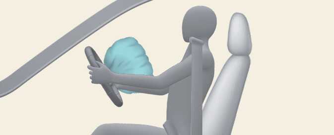 A fully inflated air bag, in combination with a properly worn seat belt, slows the driver's or the passenger's forward motion, reducing the risk of head and chest injury.