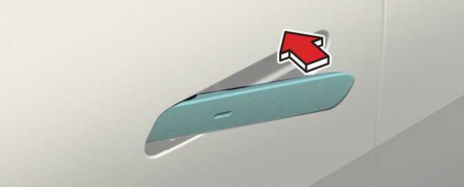 When all doors are closed, touch the touch sensor on the front outside door handle (the engraved part) while carrying the smart key with you, outside door handle will return and doors will be locked.