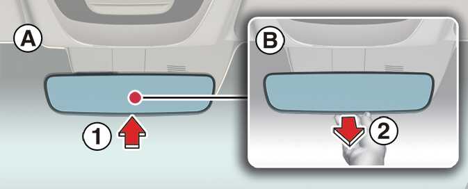 Make this adjustment before you start driving and while the day/night lever is in the day position (1).