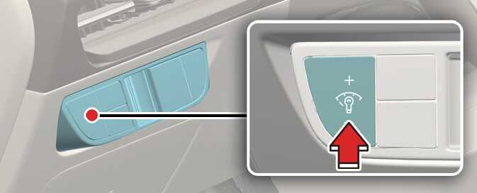 The brightness of the instrument panel illumination is changed by pressing the illumination control button ("+" or "-") when the vehicle's position lights or headlamps are turned on.