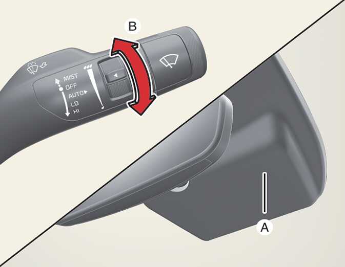 The rain sensor (A) located on the upper end of the windshield glass senses the amount of rainfall and controls the wiping cycle for the proper interval. The more it rains, the faster the wiper operates. When the rain stops, the wiper stops.