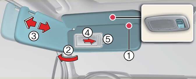 To use the vanity mirror, pull down the visor and slide the mirror cover (4).