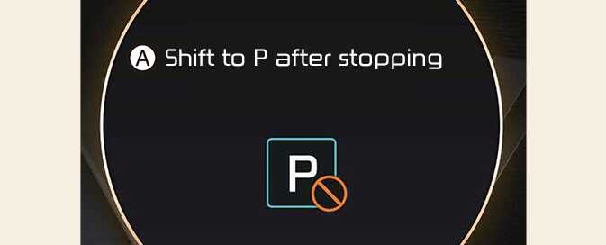 The message appears on the LCD display when the gear is shifted to P (Park) while the vehicle is moving.