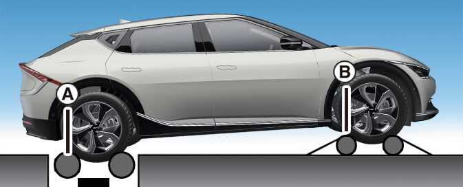 Place the front wheels on the temporary free roller as shown in the illustration.