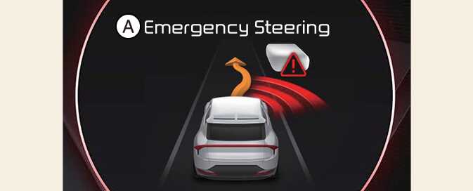 To warn the driver that emergency steering will be assisted, the warning message will appear on the cluster, an audible warning will sound.