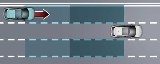 The detecting range may vary depending on the speed of your vehicle. However, even if there is a vehicle in the blind spot area, the function may not warn you when you pass by at high speeds.