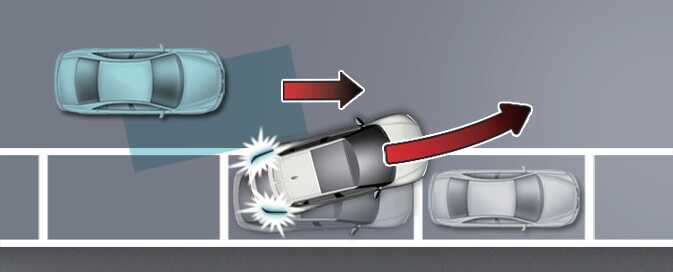 When you are driving forward out of a parking space, if Blind-Spot Collision- Avoidance Assist judges that there is a collision risk with an approaching vehicle in the blind spot, it will help avoid collision by applying the brake.