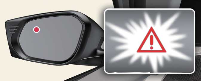 The warning light on the side view mirror will blink and the warning message will appear on the cluster, and an audible warning will sound.