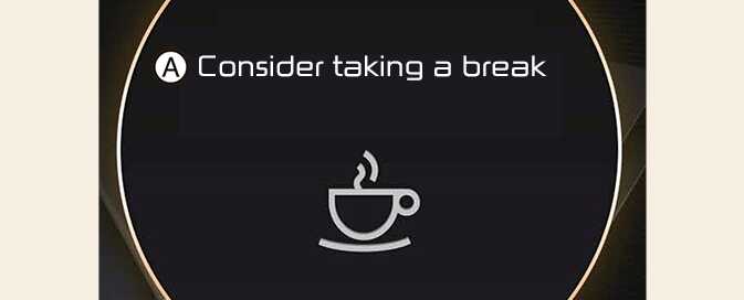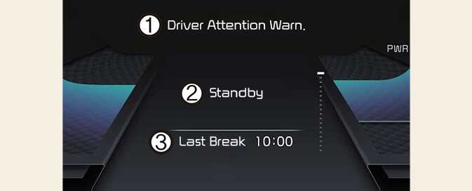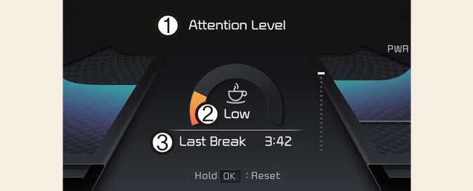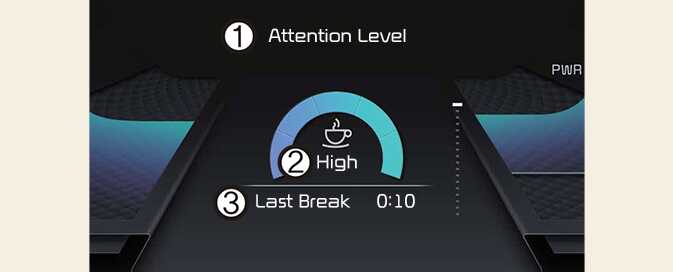 The warning message will appear on the cluster and an audible warning will sound to suggest that the driver take a break, when the driver's attention level is below 1.