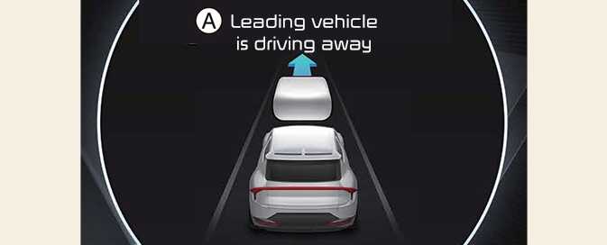 When the front vehicle departs from a stop, Leading Vehicle Departure Alert will inform the driver by displaying the warning message on the cluster and an audible warning will sound.