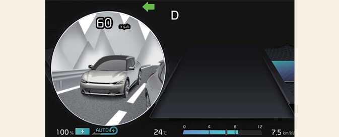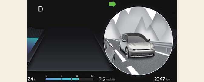 Blind-Spot View Monitor displays the rear blind spot area of the vehicle in the cluster when the turn signal is turned on to help safely change lanes.