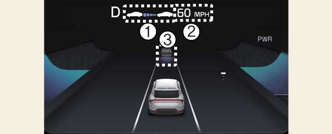 The distance of the front vehicle on the cluster is displayed according to the actual distance between your vehicle and the vehicle ahead.