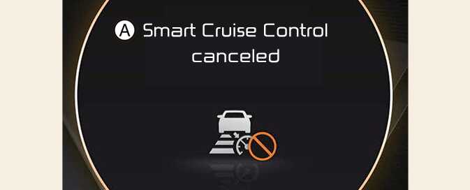 If Smart Cruise Control is temporarily canceled automatically, a warning message will appear on the cluster, and an audible warning will sound to warn the driver.
