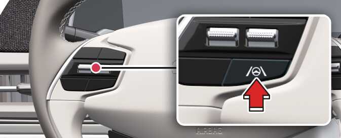 With the vehicle on, shortly press the Lane Driving Assist button located on the steering wheel to turn on Lane Following Assist. The gray or green (