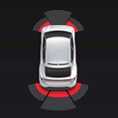 The corresponding indicator will appear on the cluster or infotainment system screen whenever each ultrasonic sensor detects a person, animal or object in its sensing range. Also an audible warning will sound.