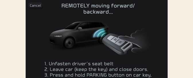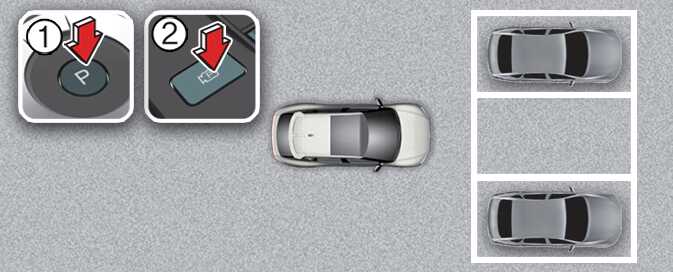 Park the vehicle in front of the space where you want to use Remote Operation function, and shift the gear to P (Park).