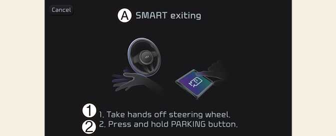 While Smart Exit function is operating, if you do not hold down the Parking/View button, the vehicle will stop and function control will pause. The function will start operating again when the Parking/View button is pressed and held again.