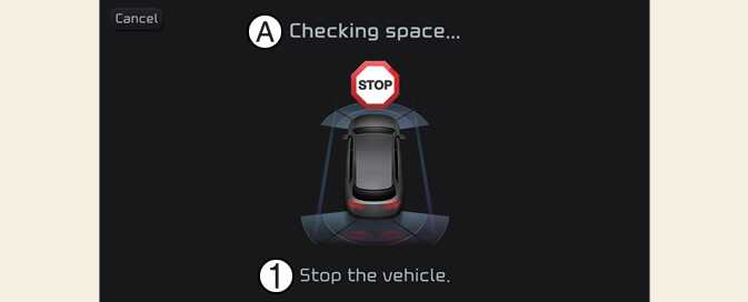 Even if check for space is completed, objects in the blind spot area cannot be detected by the sensors. The driver must directly check the blind spot area to continue using the function.