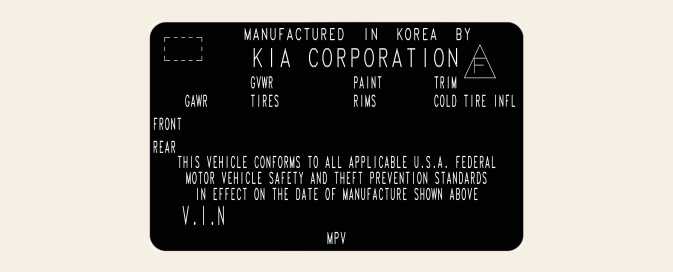 This label shows the maximum allowable weight of the fully loaded vehicle. This is called the GVWR (Gross Vehicle Weight Rating). The GVWR includes the weight of the vehicle, all occupants and cargo.