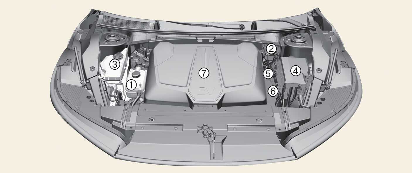 The actual motor compartment in the vehicle may differ from the illustration.