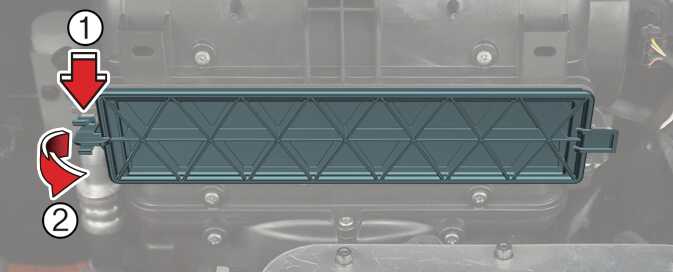 Remove the climate control air filter case (2) by pulling out left side of the cover (1).