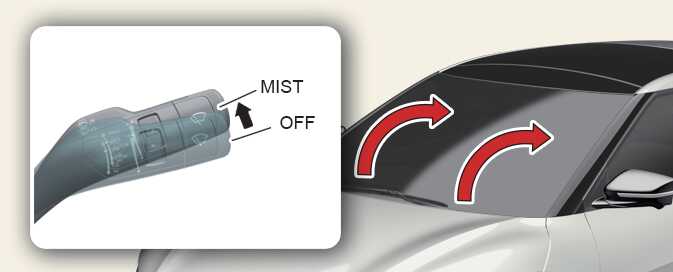 After turning off the vehicle, move the wiper switch to the single wiping (MIST) position within 20 seconds and hold the switch more than 2 seconds until the wiper blade is in the fully up position.