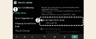Select EV→ EV Setting → Utility mode screen, switch the Utility mode activation menu to OFF on the In the infotainment system. After confirming the deactivation of the utility mode, press Yes to deactivate the utility mode and the vehicle will turn off
