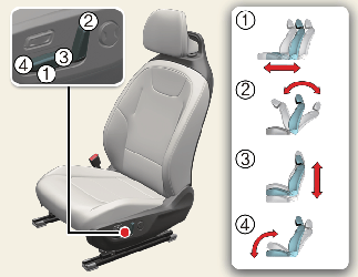 Adjust the seat before driving, and make sure the seat is locked securely by trying to move without using the lever. If the seat moves, it is not locked properly.