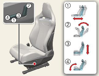 The seat can be adjusted using the control levers located on the outside of the seat cushion.