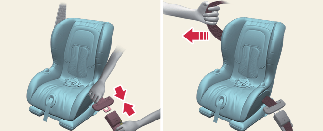 To remove the Child Restraint System, press the release button on the buckle, and then pull the lap/shoulder belt out of the Child Restraint System and allow the seat belt to retract fully.