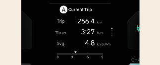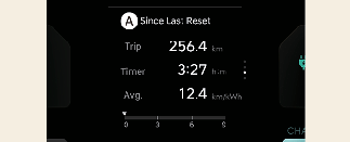 The average energy economy is not displayed for more accurate calculation if the vehicle does not drive more than 10 seconds or 50 meters (0.03 miles) since the EV button is turned to ON.