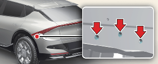 The mounting hole for hitches are located on both sides of the underbody behind the rear tires.